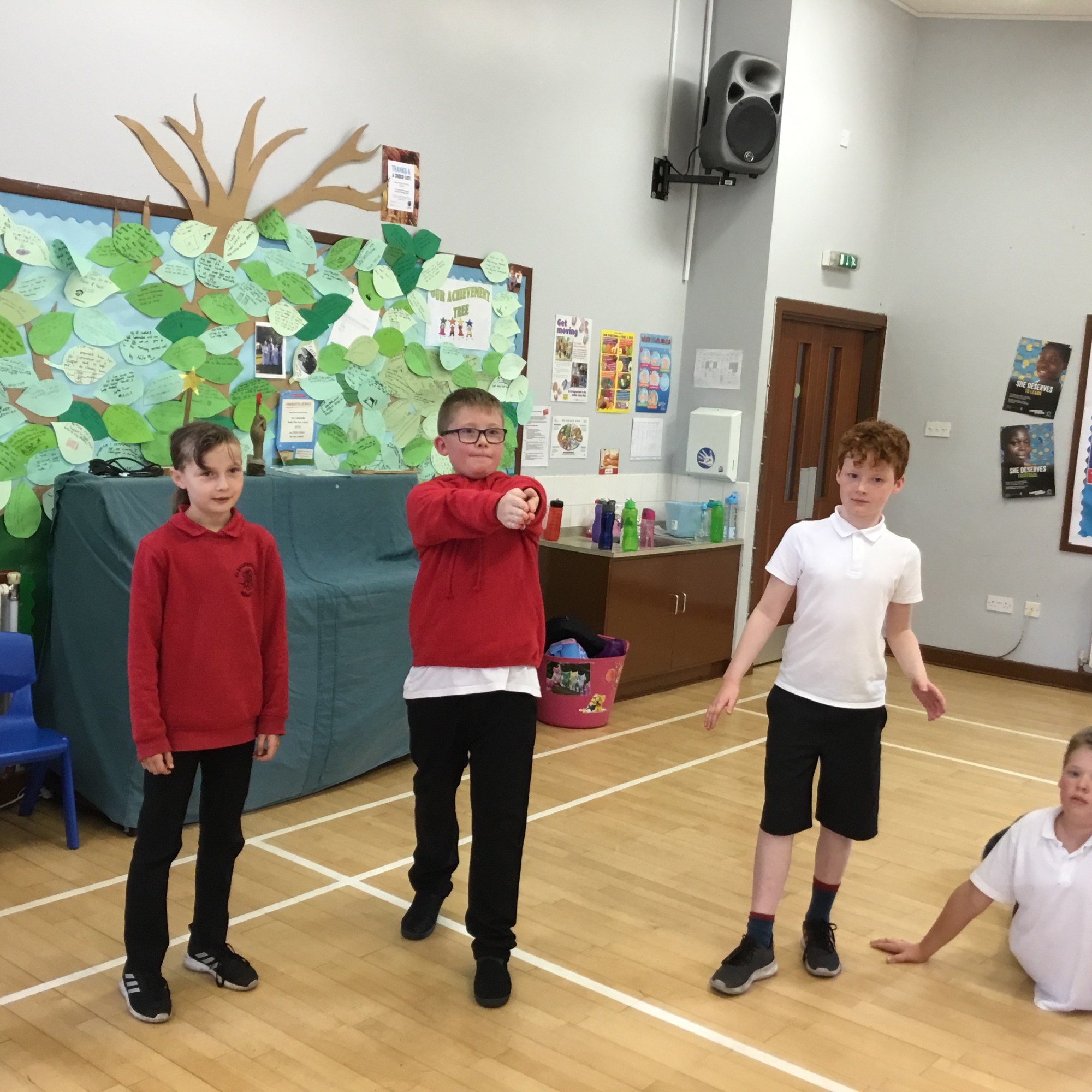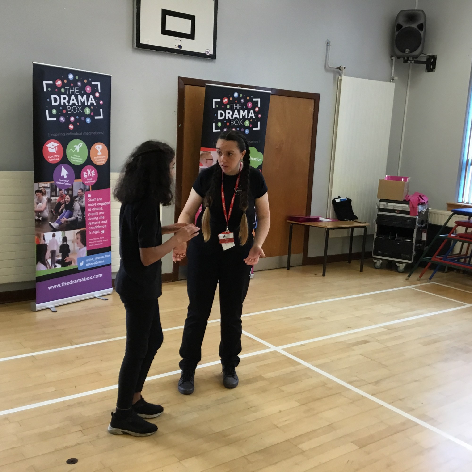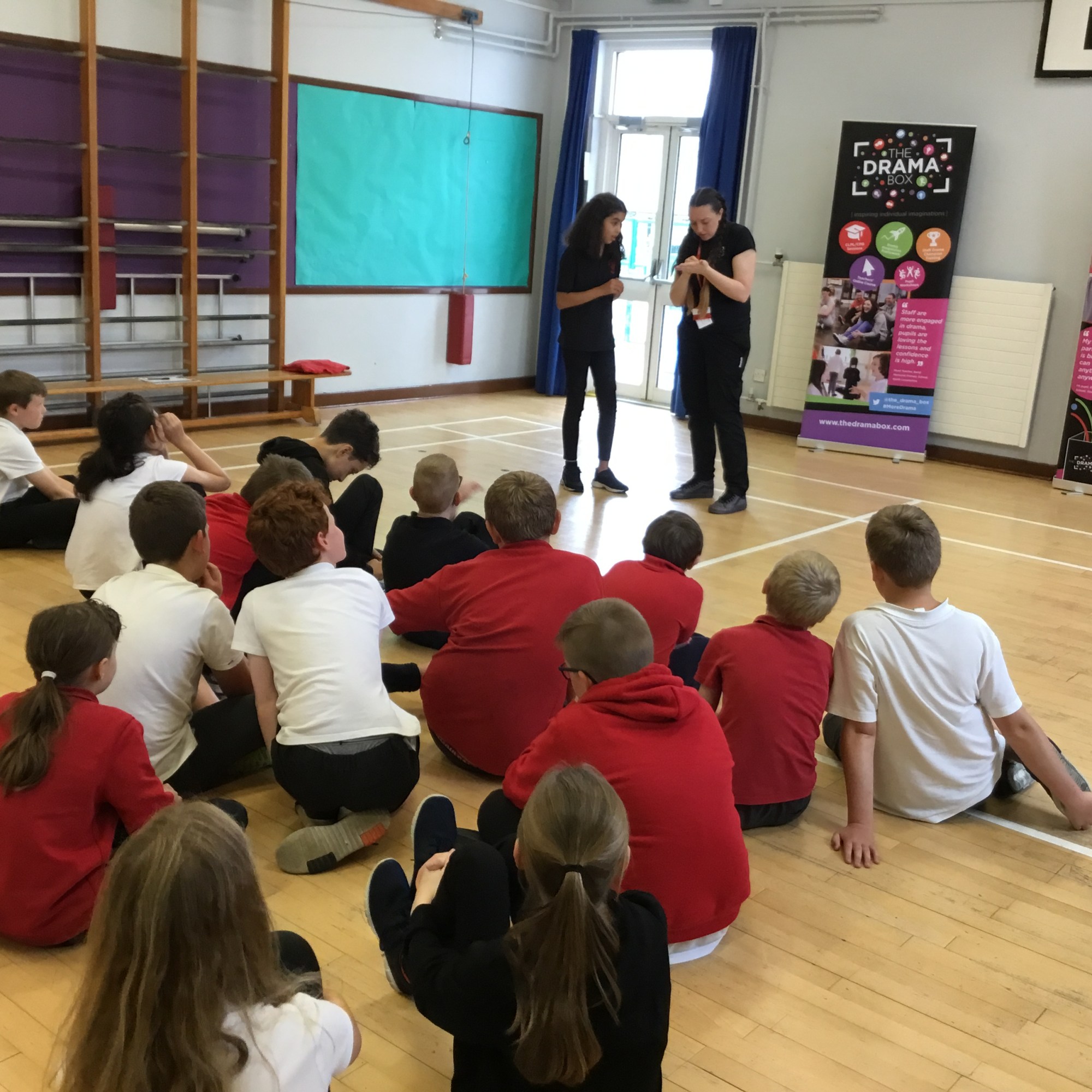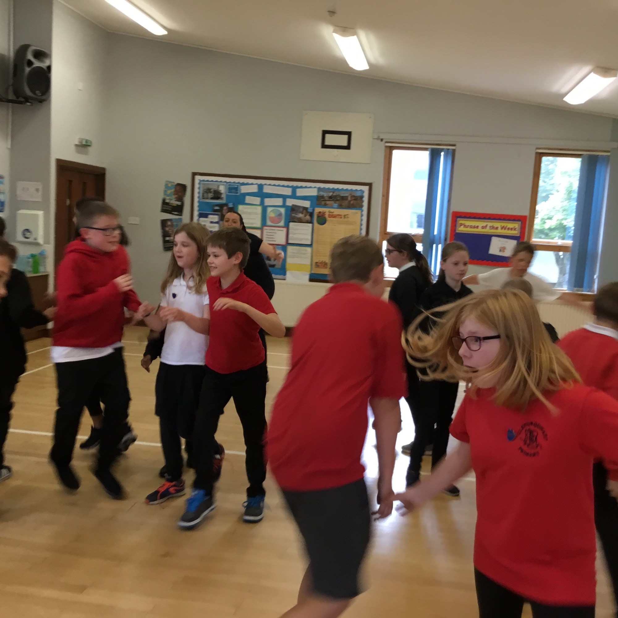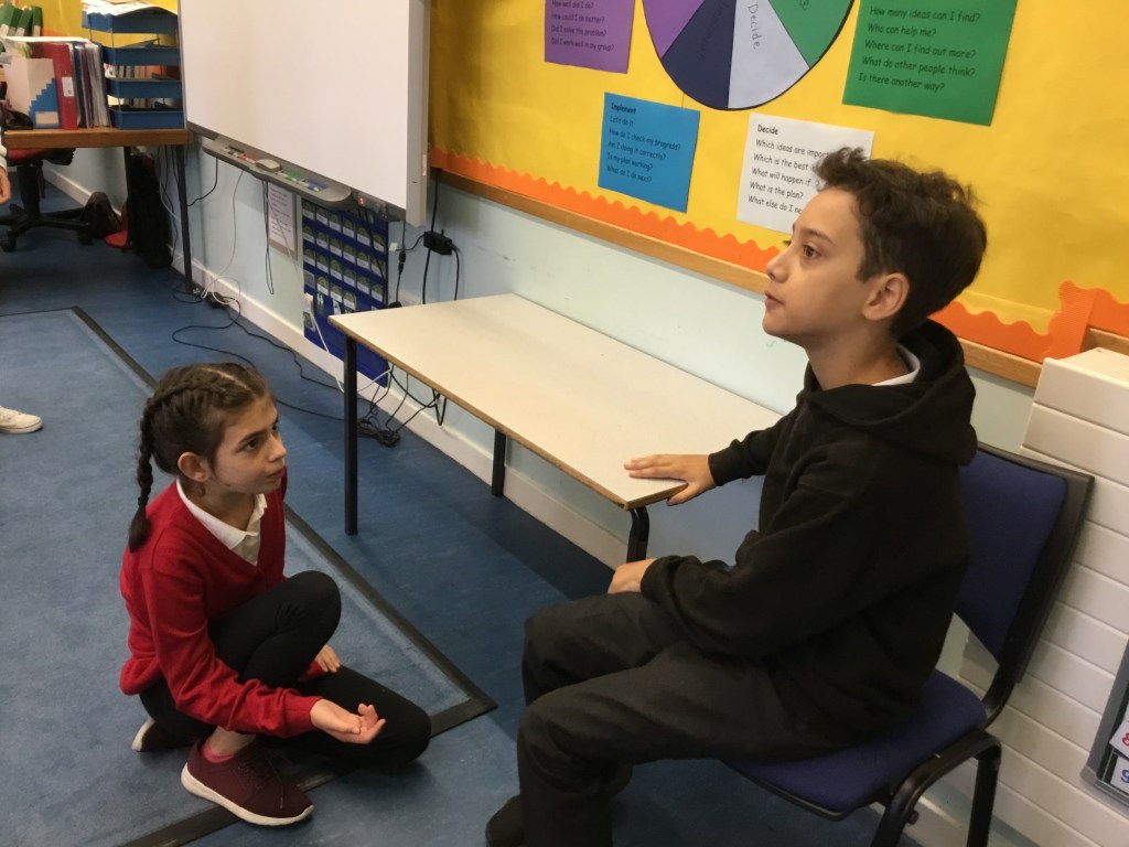 Last week we enjoyed a drama workshop led by Louisa from The Dramabox. We started off playing a circle game called “Whoosh!” We had to listen carefully and react quickly to stay in the game. We also discussed improvisation, and how this can only work if everyone involved responds positively as well as creatively (2 of our school values!) Louisa demonstrated how to do this with one of our brave P7s.