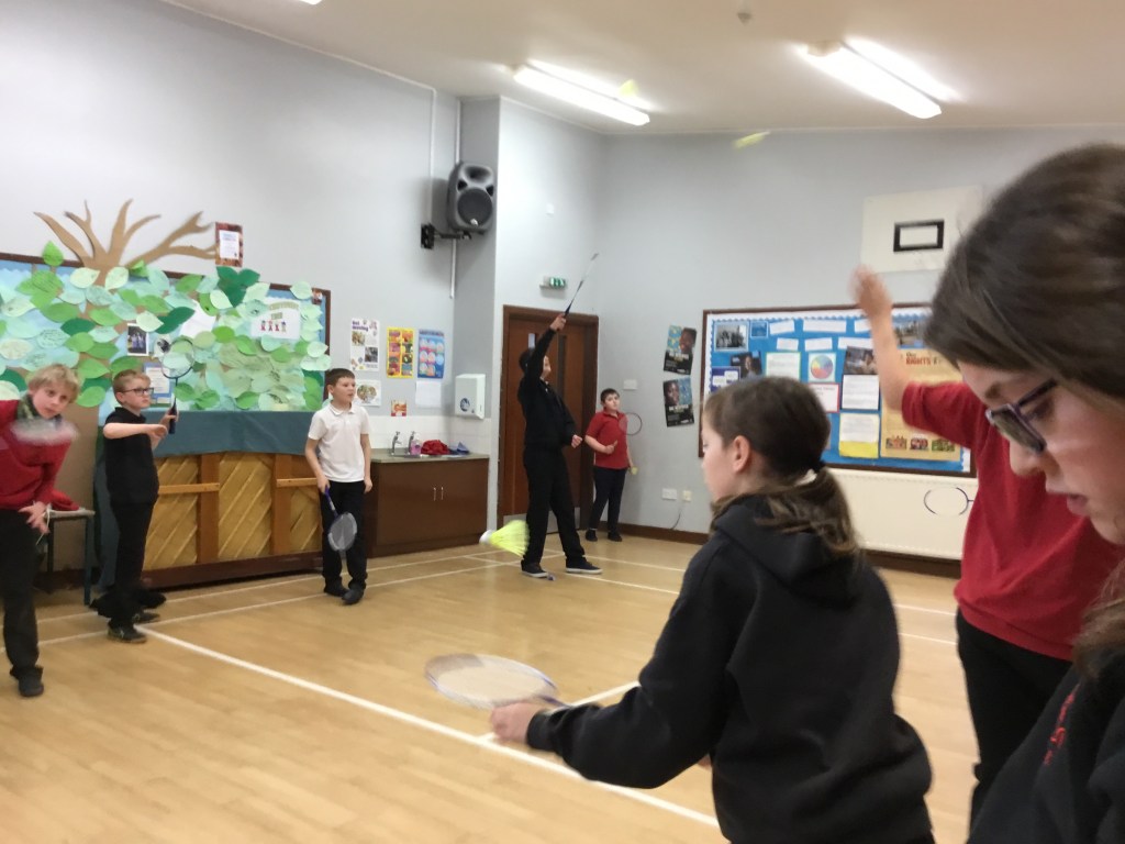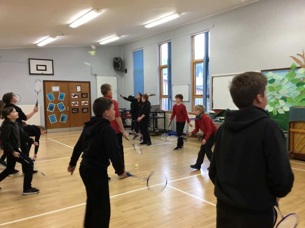 This afternoon in PE we practised badminton rallies with Miss Mullin. We had to be quite careful and think about how to make it easier for our partners in our school hall – it felt quite different compared with playing badminton at Glen Urquhart High School.